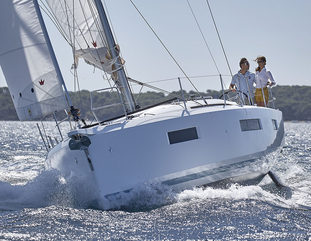 The high performance platform incorporates a full length, hard chined hull to promote fast cruising while minimizing heeling. The generous sail plan is easily handled by the inboard winches and lowered gooseneck height. Sailing this boat is an experience like none other. She is fast, powerful, and nimble on the wheel.